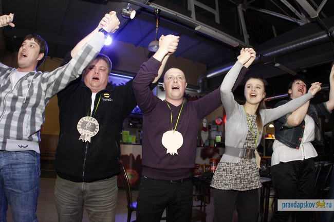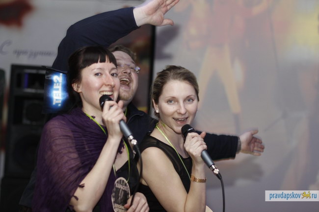 Померятся вокальными данными, уровнем задора и веселья пришли команды МТС, Beeline и Tele2. Конкуренцию им попробовала составить команда "Псковской правды".