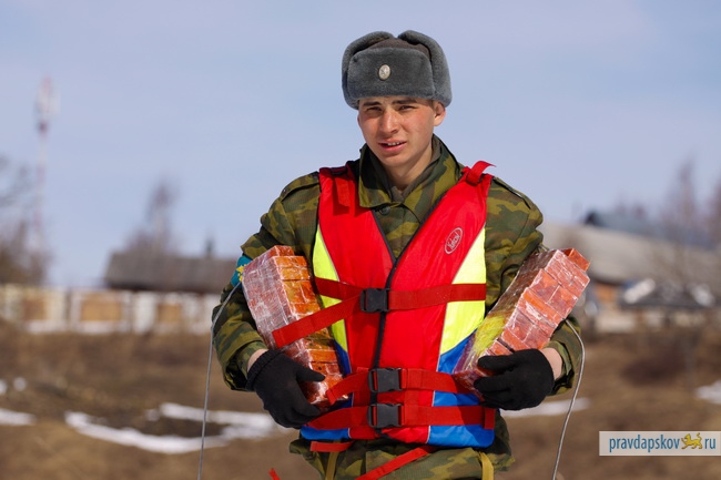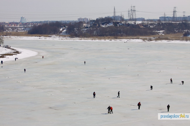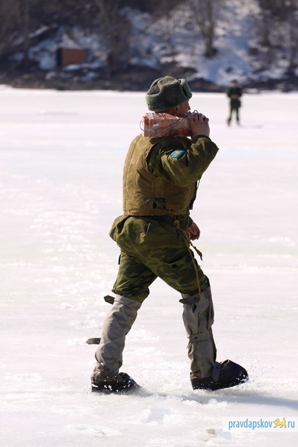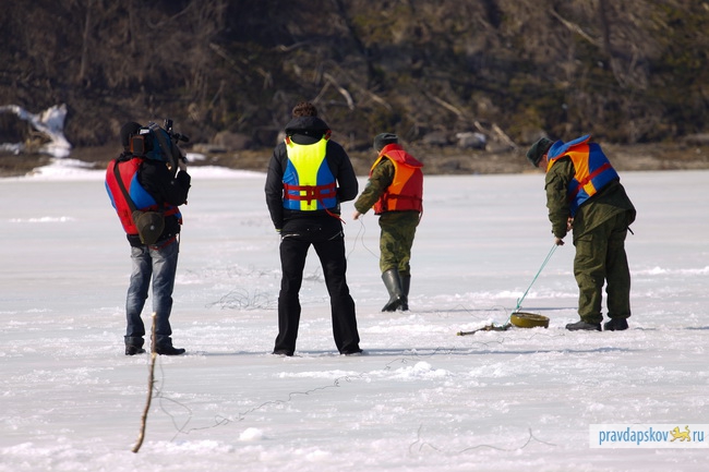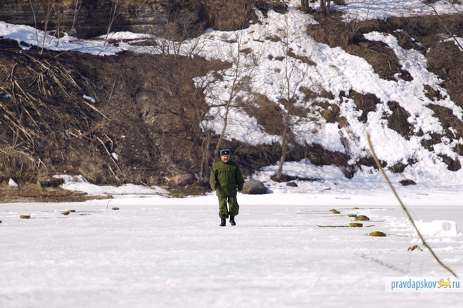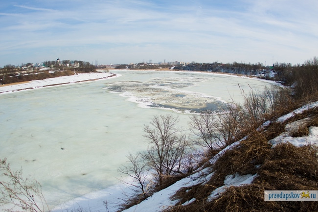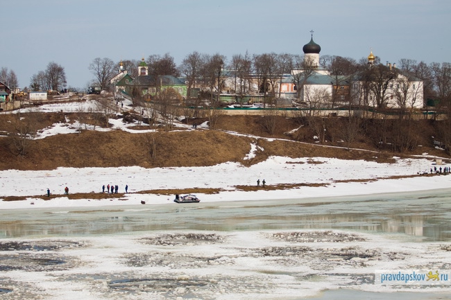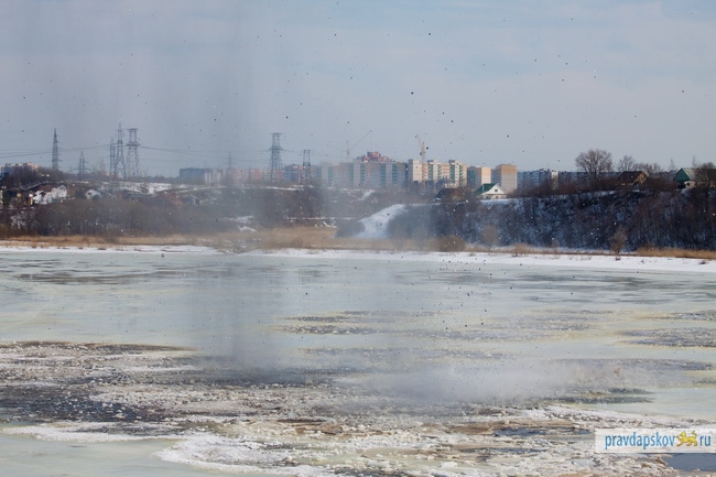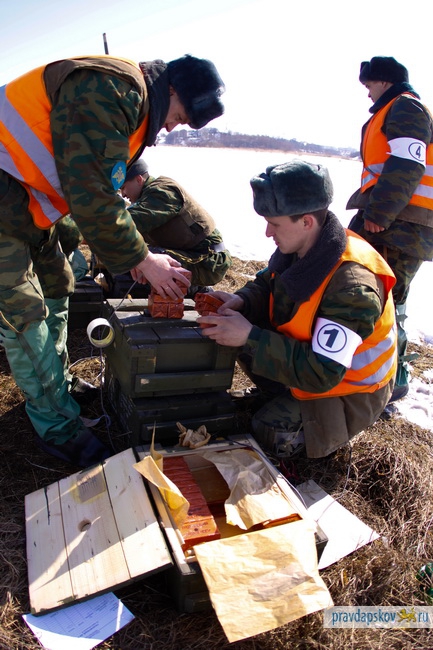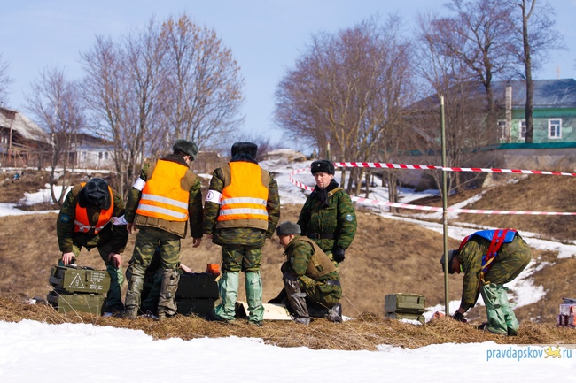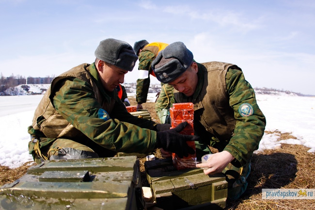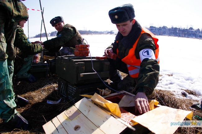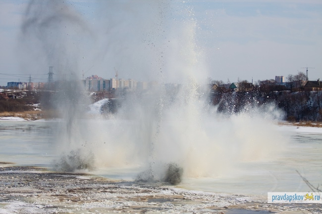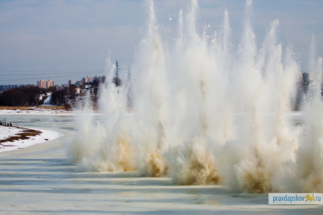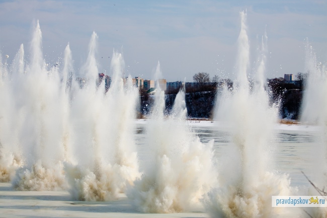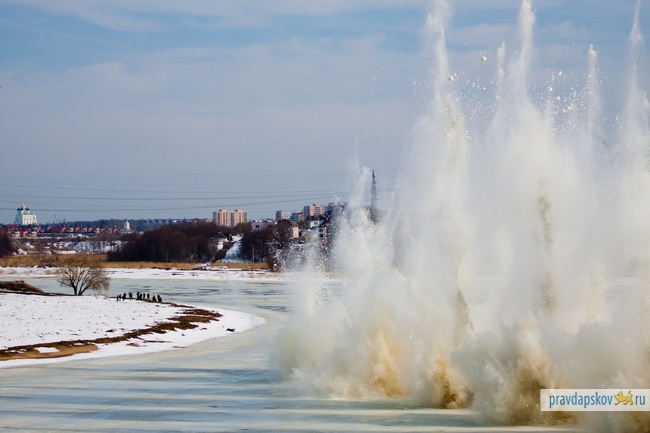 Сотрудники Главного управления МЧС России по Псковской области произвели сегодня взрывные работы на льду реки Великой в районе Снетогорского монастыря.