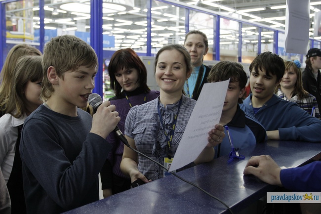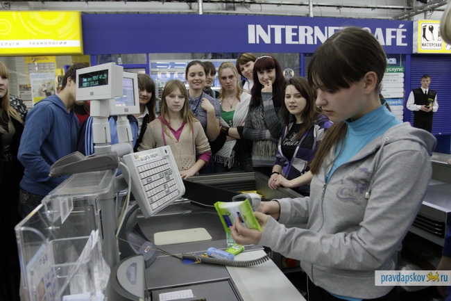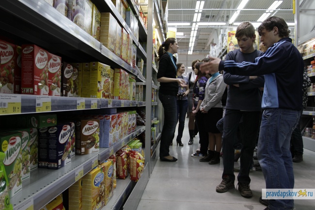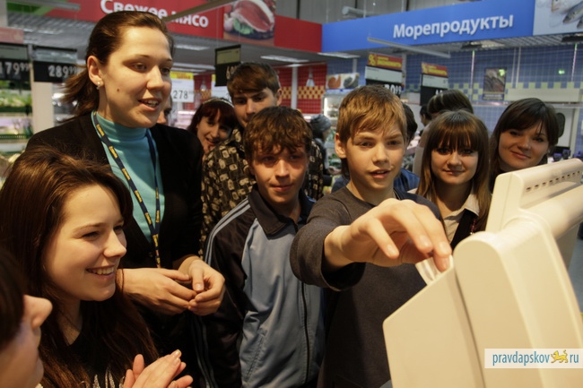 В Пскове едва ли найдется житель, который ни разу не бывал в одном из гипермаркетов. Однако картина того, как этот мини-город функционирует, глазам покупателей недоступна. Детям из Печорской школы-интерната на этой неделе выпал шанс увидеть работу одного из гипермаркетов изнутри.