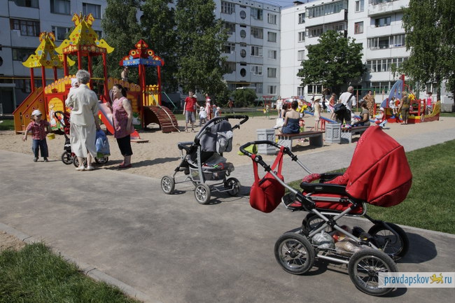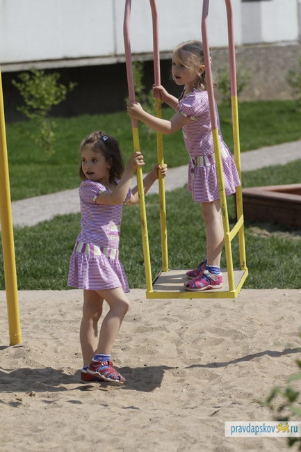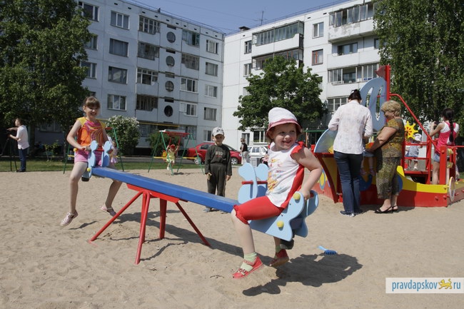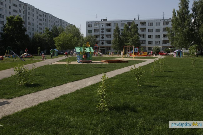 В псковском дворе на ул. Коммунальная, 45 завершены работы по благоустройству. Две недели назад его показывали премьер-министру Путину. К его приезду был постелен зеленый газон, поставлена детская площадка, проезжай часть и тротуары двора заасфальтированы.
