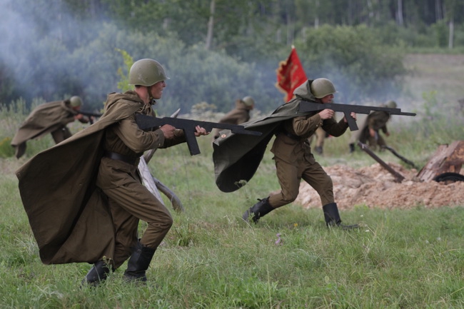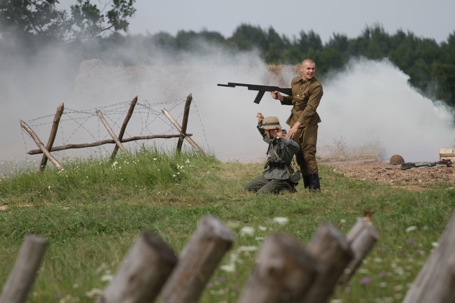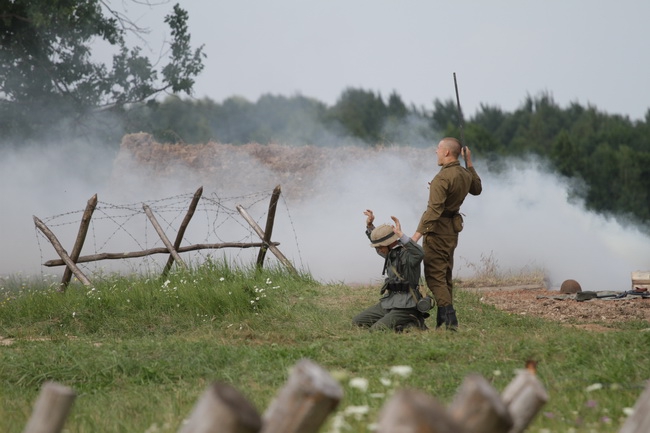 В 35 километрах от Острова – неподалеку от бывшей границы СССР и Латвии – прошла историческая реконструкция "Линия Сталина", организованая Военно-историческим музеем Псковской области.