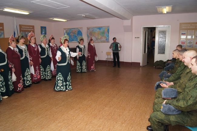 9 ноября на призывном пункте в Пскове провожали на службу в армию очередную партию новобранцев. Скрасить последние часы на гражданке и отправить отдавать долг родине так, чтобы этот день запомнился надолго, в военкомат приехали звезды в кокошниках.