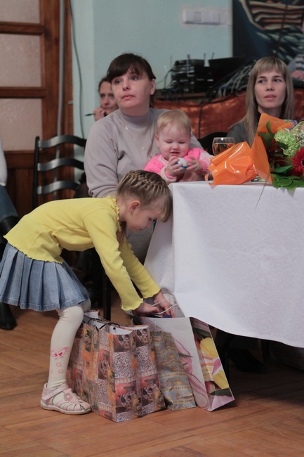 Праздник был посвящен Дню матери, и на него позвали многодетные семьи города. Протокольная часть заняла удивительно мало времени, а вот развлечениям и играм, сладкому застолью была отдана большая часть праздника