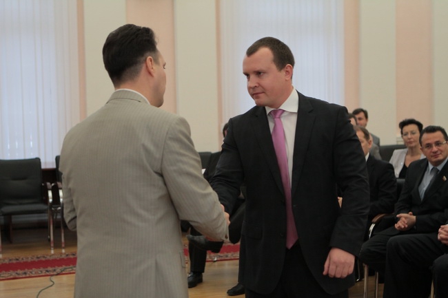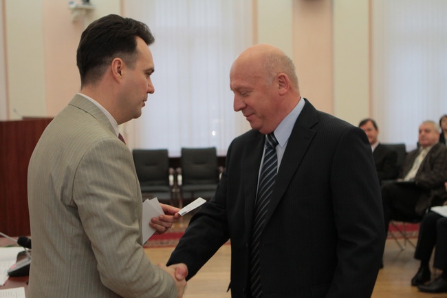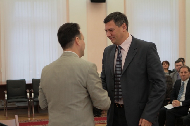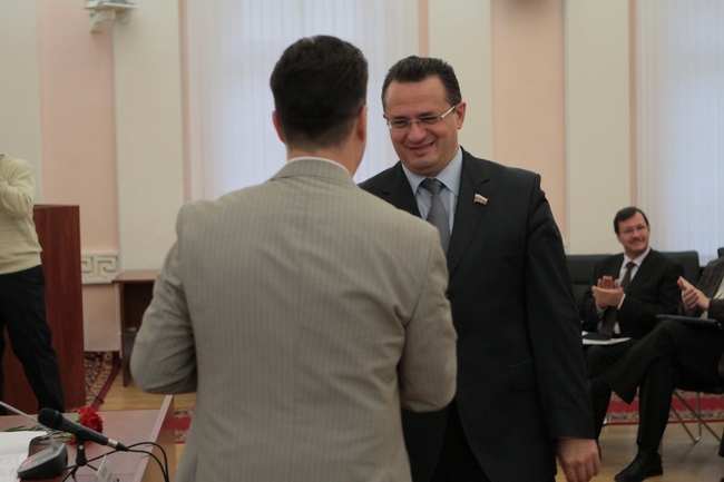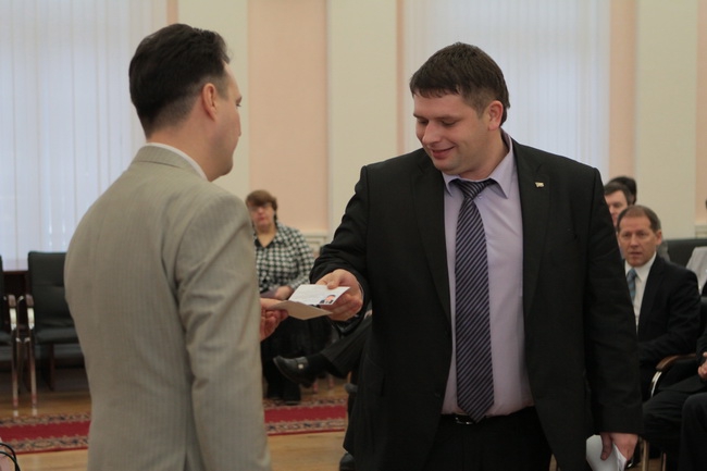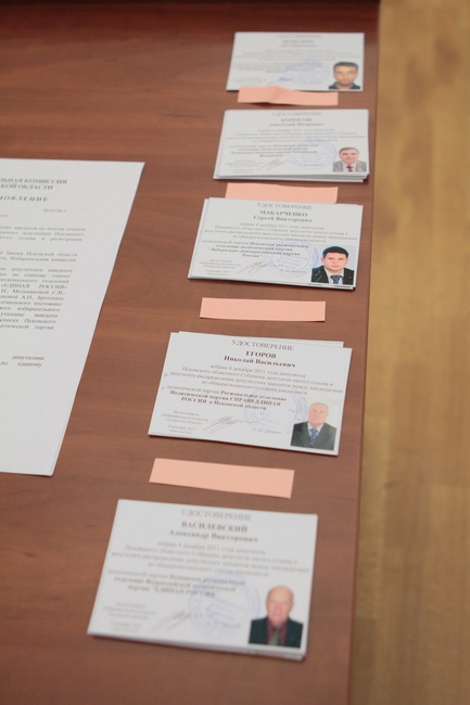 Председатель облизбиркома Николай Цветков вручил им временные депутатские удостоверения.