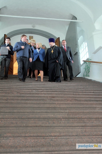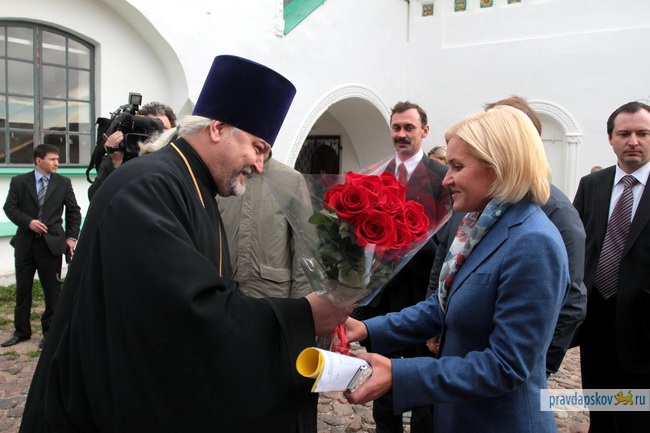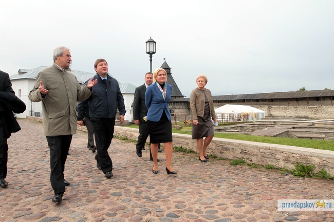Поездку по Пскову Ольга Голодец начала с визита в Псковский Кремль и Троицкий собор. Затем вице-премьер побывала в Центре лечебной педагогики, интеграционных мастерских для инвалидов, в городской и областной больницах, в детском садике "Аистенок", на реконструкции Псковского драматического театра.