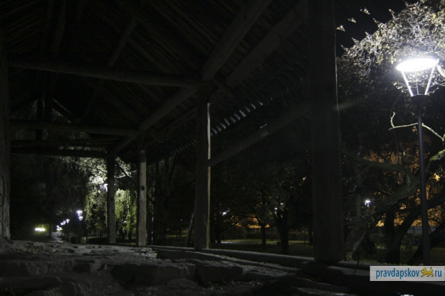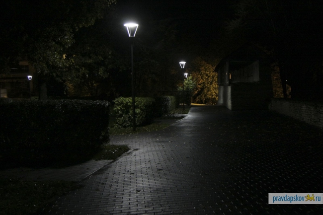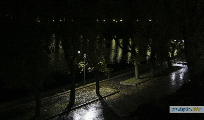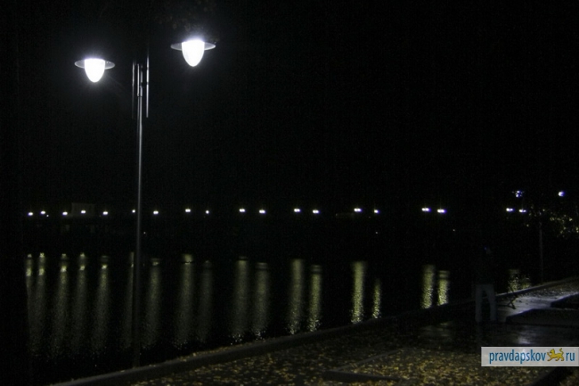 На набережной Великой, которая находится в процессе реконструкции, и в сквере породненных городов во вторник включили свет.
