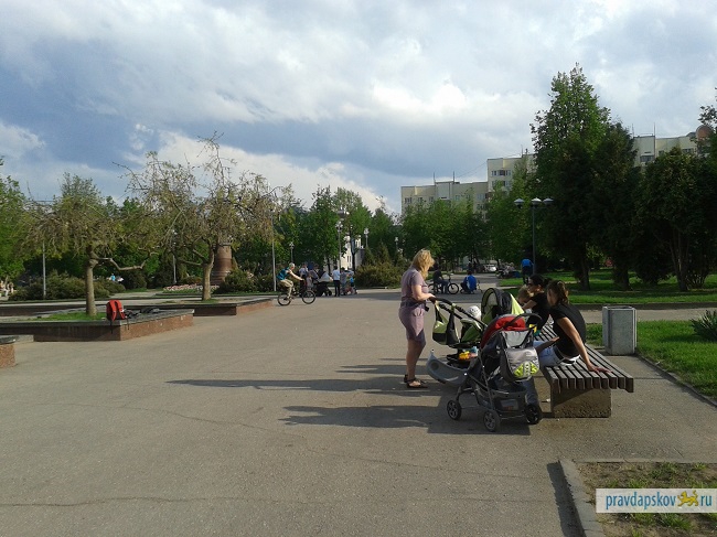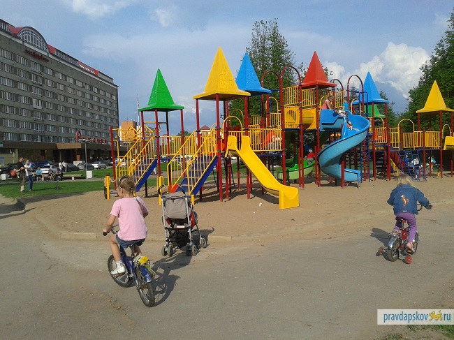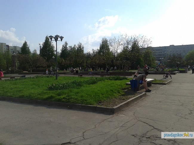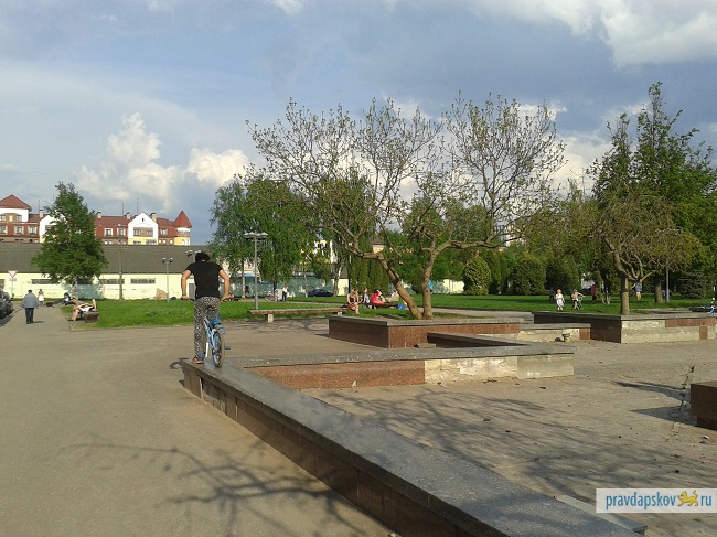 Пока привычные места отдыха в Пскове выведены из публичного оборота - и набережная Великой, и Детский парк по-прежнему находятся в процессе реконструкции - горожане начинают осваивать новые пространства. В пятницу, в конце рабочего дня неожиданно многолюдным оказался сквер возле гостиницы Рижская. Основной контингент составляли дети и их родители, но также в сквер вышло и немало молодежи с велосипедами, скейтбордами и бадминтоном.