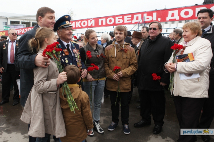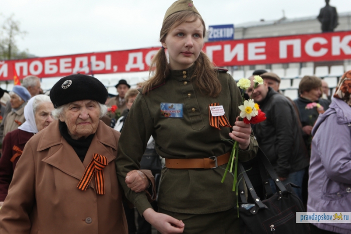 Внуки победителей прошагали по центру с портретами дедов, по городу проехали ретроавтомобили (читать далее)