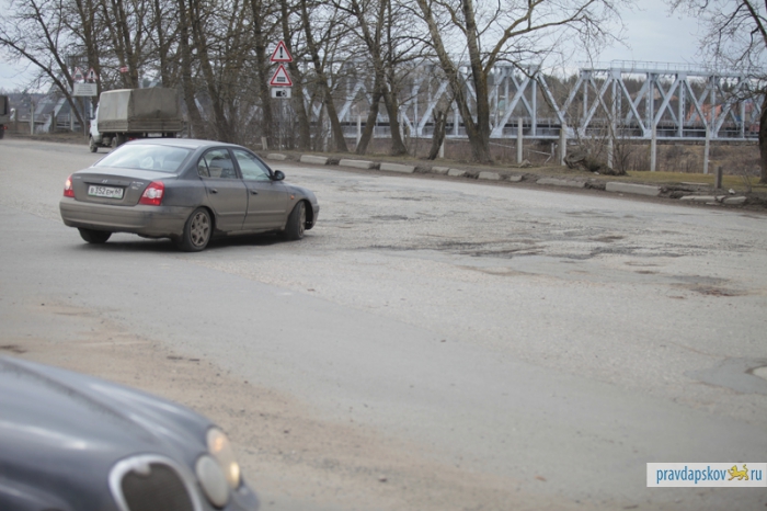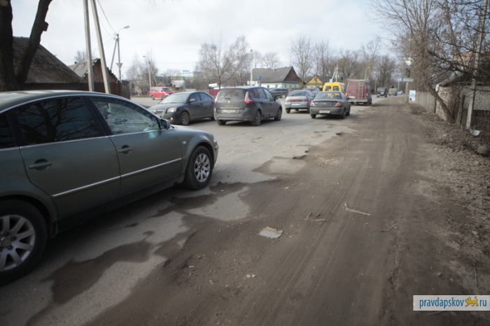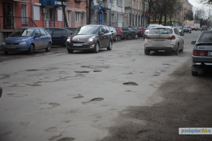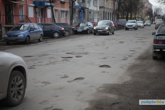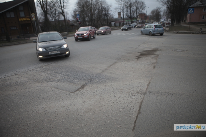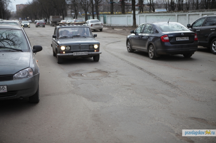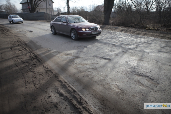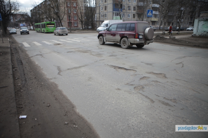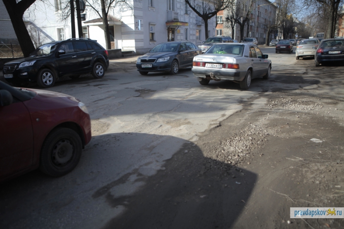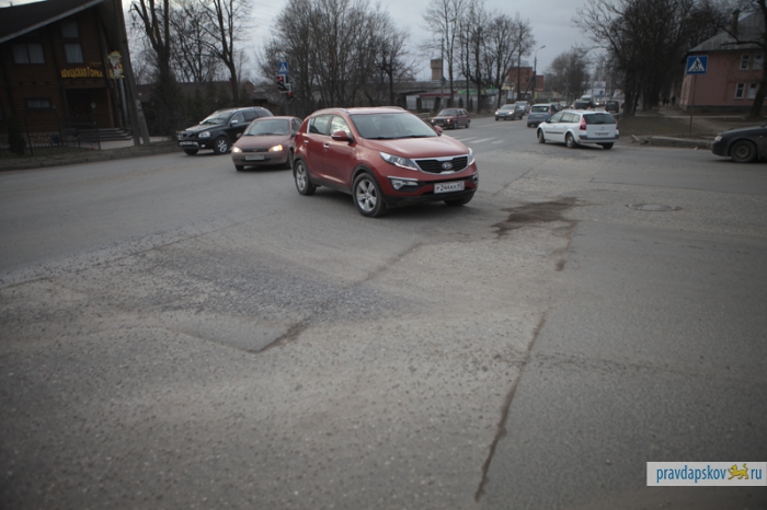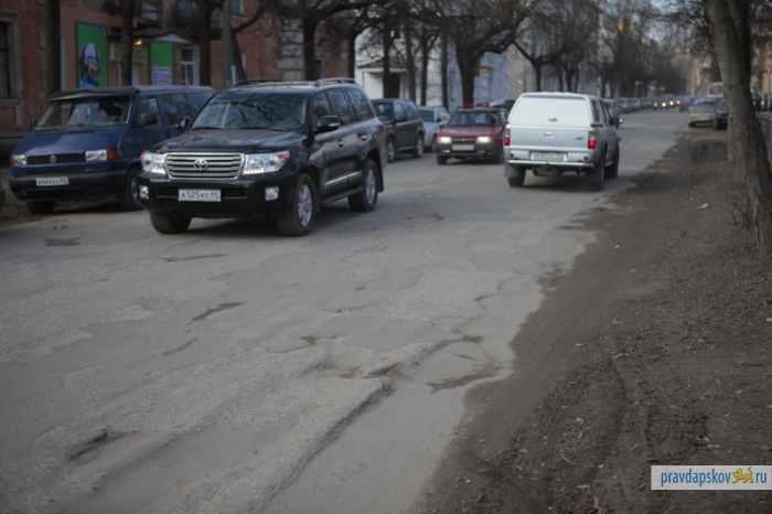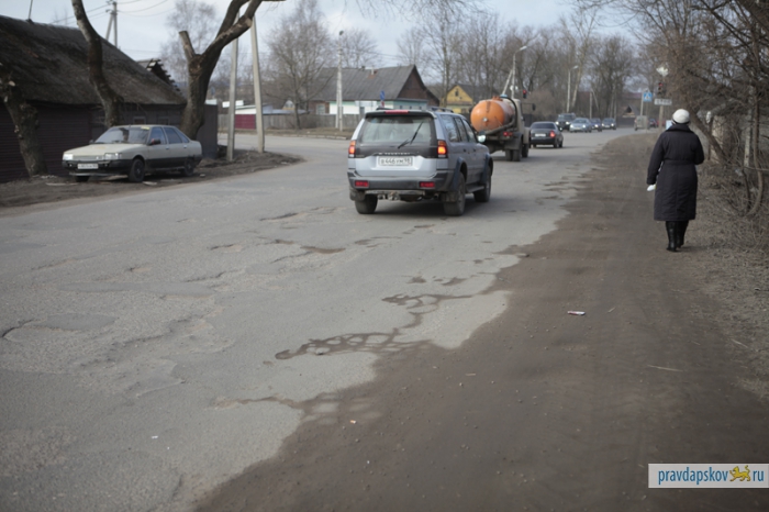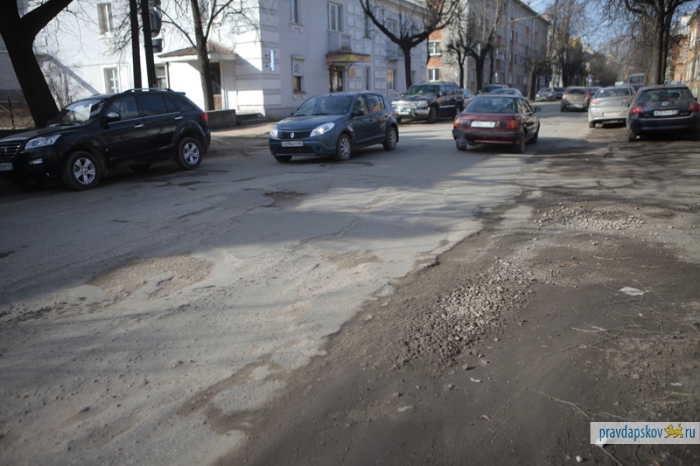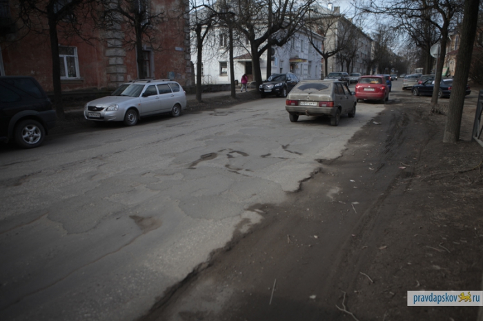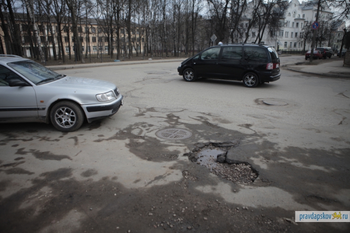 В Пскове нынешней весной с дорогами тоже не все гладко, асфальт и снег уже по традиции кое-где сошли вместе. Ямы и выбоины можно встретить не только на второстепенных улицах (впрочем, для живущих там псковичей эти улицы самые что ни на есть главные), но и там, где Псков должен бы сиять во всей красе. Например, у главного здания Псковского музея-заповедника.
