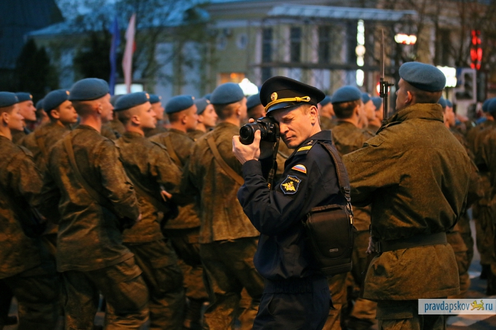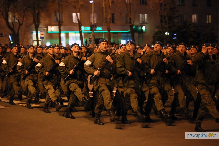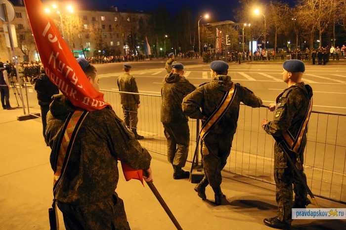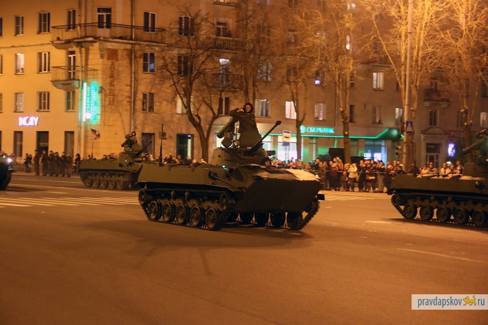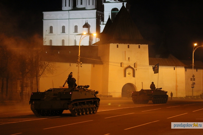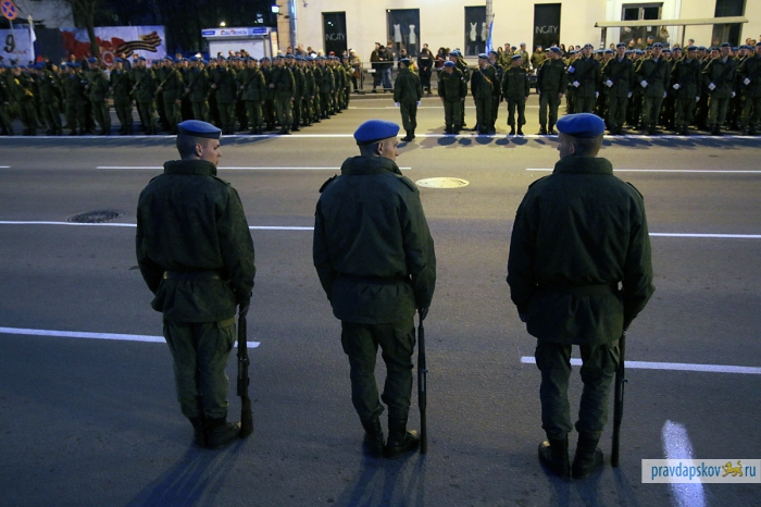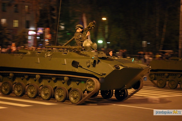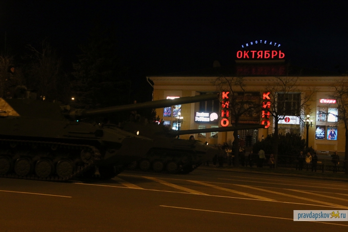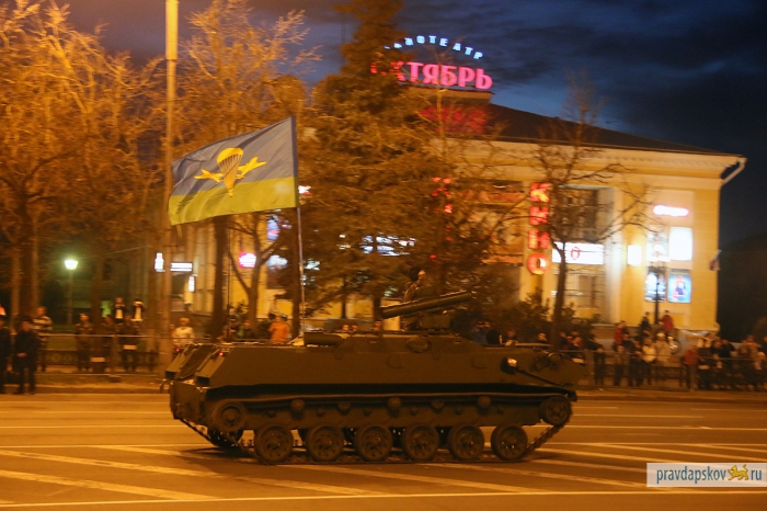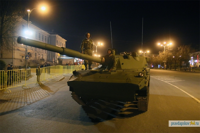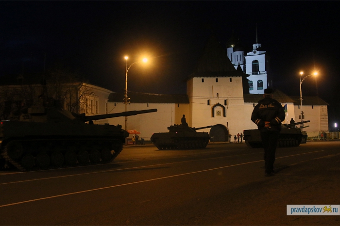 4 мая в Пскове состоялась первая репетиция Парада Победы. В ночь на 7 мая на улице Ленина и Октябрьском проспекте пройдет генеральная репетиция. Об этом рассказал заместитель начальника штаба 76-й гвардейской десантно-штурмовой дивизии по службе войск и безопасности воинской службы Эдуард Сторожев. В центре пройдут такие виды военной техники, как БМД-2, БТР-ЗД, 2С9 «Нона-С», самоходное орудие 2С25 и зенитный ракетный комплекс «Стрела».