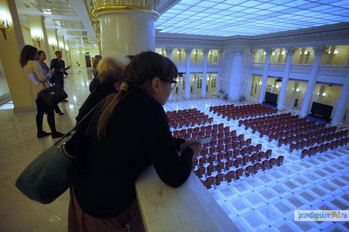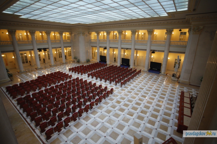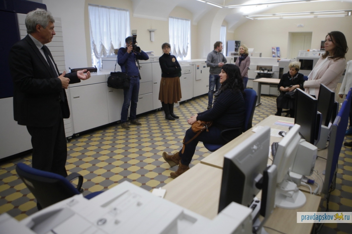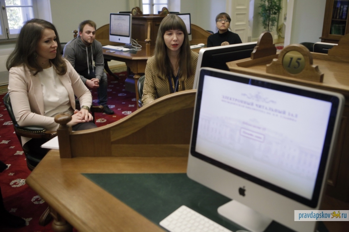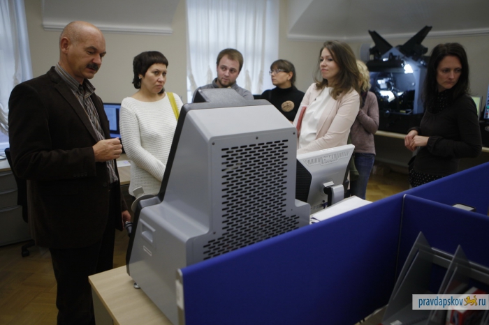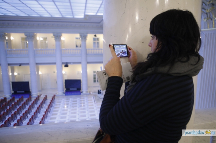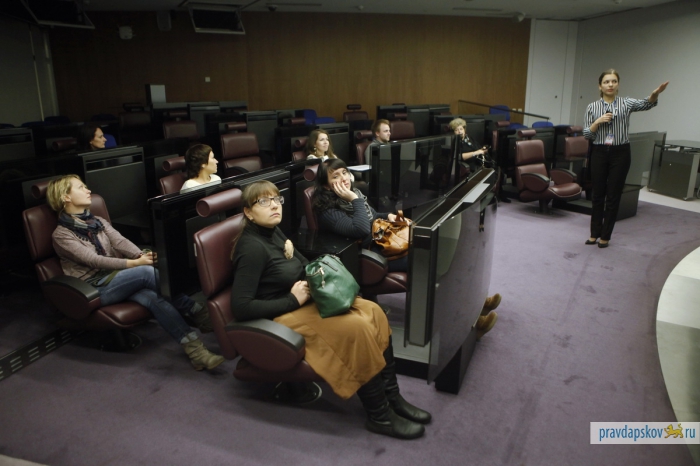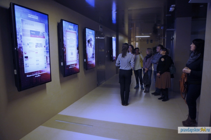 Пропускная система строже, чем в аэропорту. Рамка металлоискателя, рентгеновская лента для дамских сумочек, мобильники, ключи и металлические детали одежды – отдельно. И вот сотрудники «Псковской правды» внутри одного из самых охраняемых зданий Петербурга – в Президентской библиотеке им. Б.Н.Ельцина. Мы приехали, чтобы познакомиться и подружиться для совместных проектов. Обещаем, нам будет чем вас удивить. Размах – под стать учреждению.