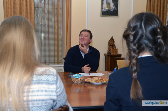 Глава региона встретился с начинающими журналистами «Псковской правды» в формате «Без галстуков. Общение проходило за чашкой чая в неформальной обстановке. Андрей Турчак ответил на вопросы юных журналистов, местами довольно личные.