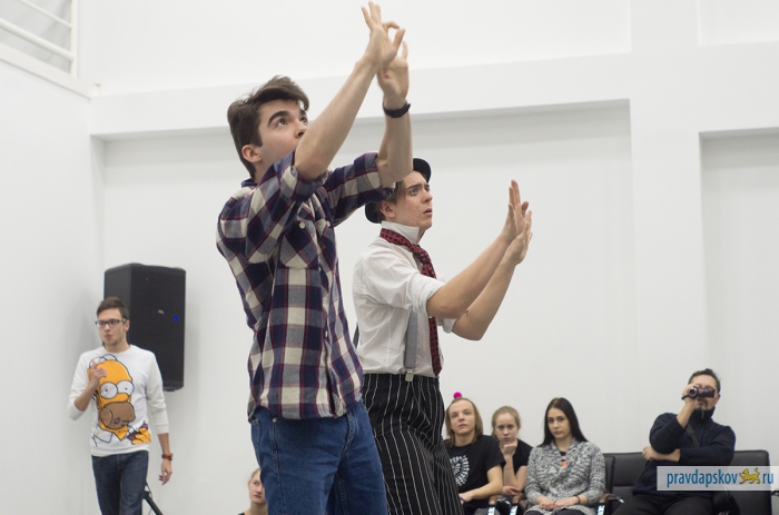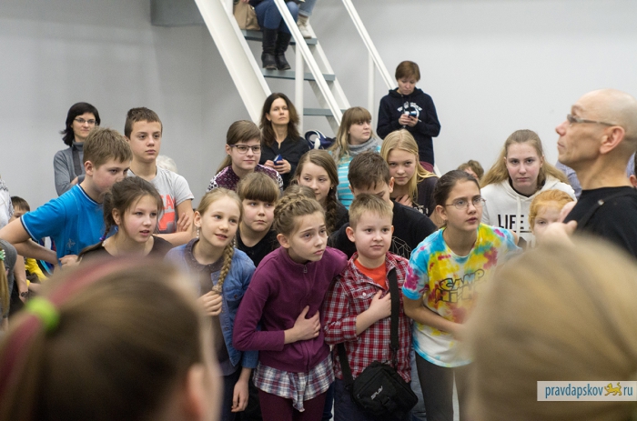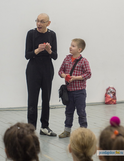 Пока начинающие артисты, их родители и другие зрители рассаживались по местам, комик незаметно проскользнул в зал с мешками полными реквизита. Спустя минуту, сказав пару приветственных слов, Анвар собрал ребят в круг и началось!