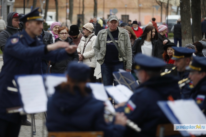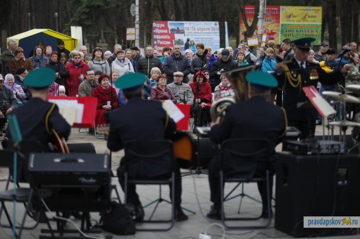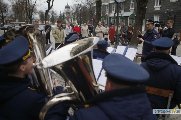 Второе новшество касается программы фестиваля. Музыкантов в прямом смысле вывели на улицу. В заключительный день, 9 апреля, военные духовые оркестры сыграли поочередно в трех точках: у памятника Пушкину и крестьянке в Летнем саду, у центральной аптеки на пешеходной улице Пушкина и у кинотеатра «Октябрь».