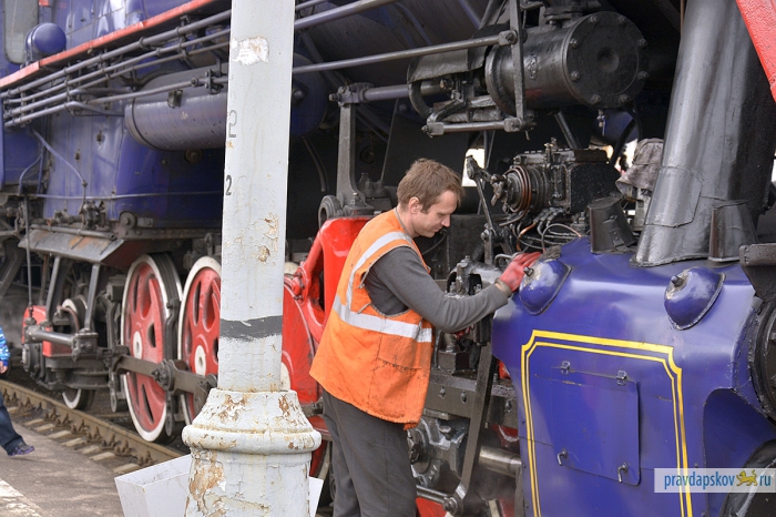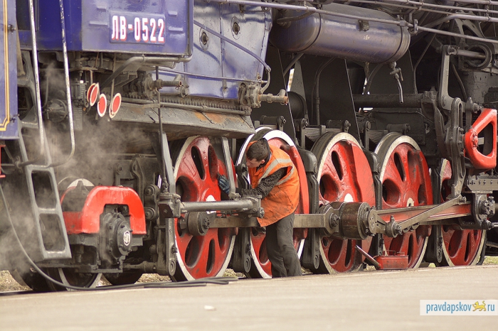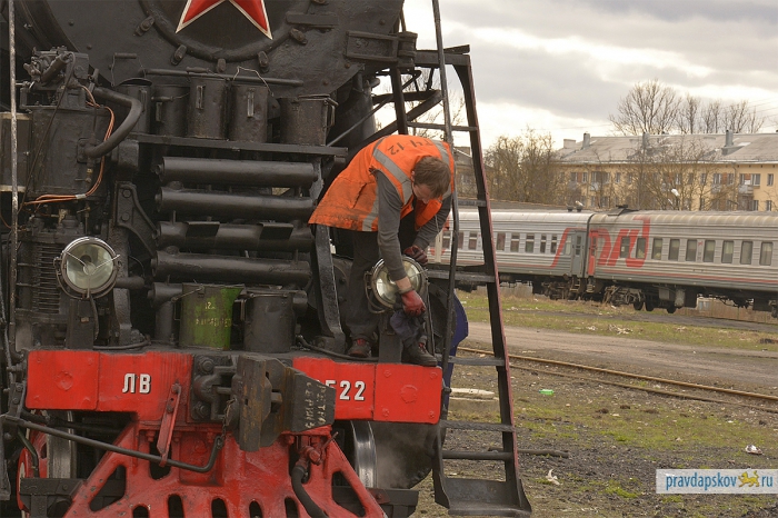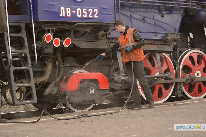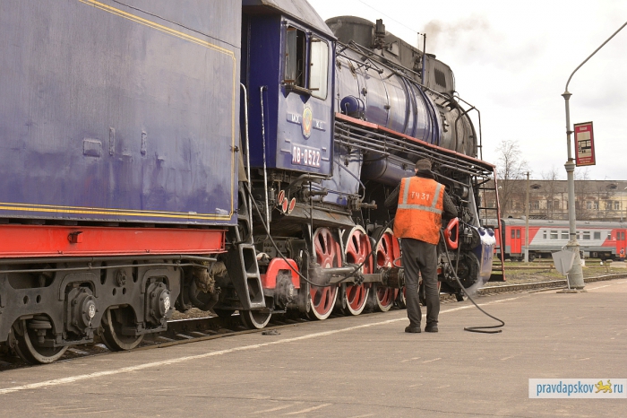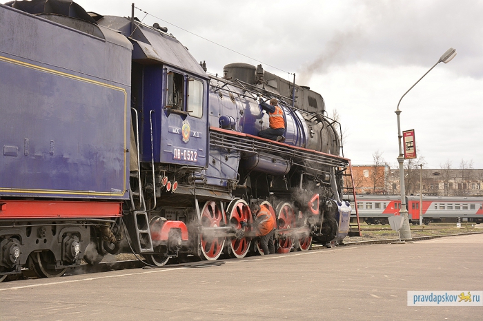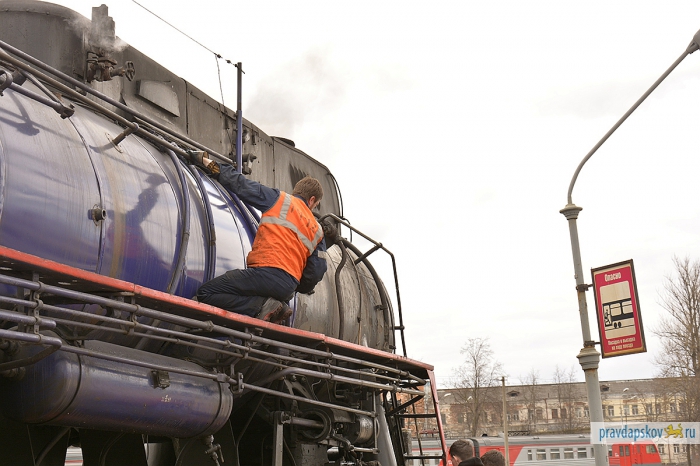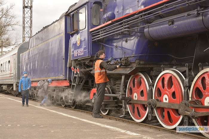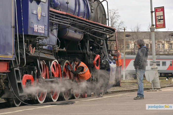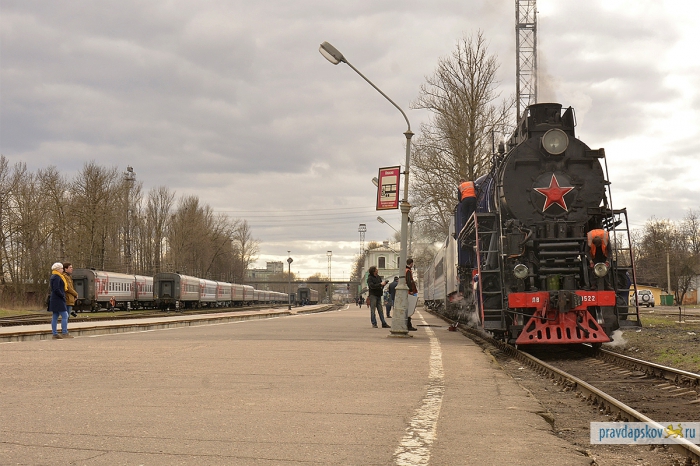 Утром 15 апреля псковичи, оказавшиеся на железнодорожном вокзале, стали свидетелями необычного зрелища: в наш город прибыл паровоз середины XX века.