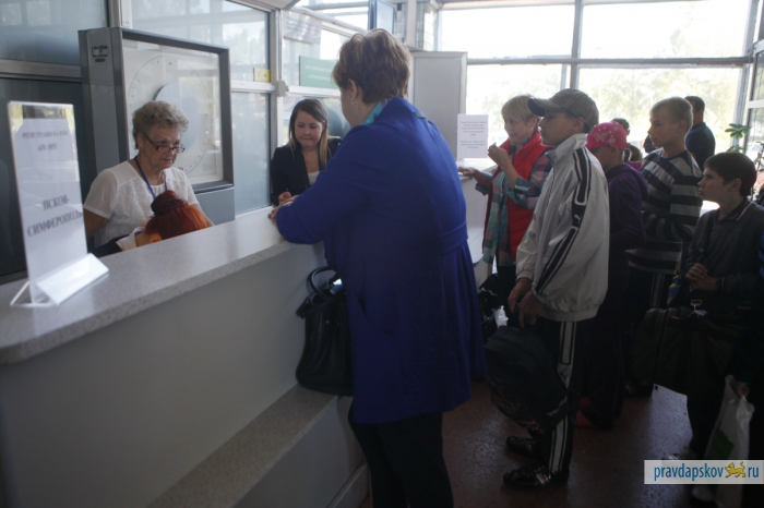 Из Пскова вылетел первый рейс в Крым. В числе пассажиров на отдых в Евпаторию отправились пятнадцать детей-сирот. Путевки в санаторий им купили за счет резервного фонда администрации области.