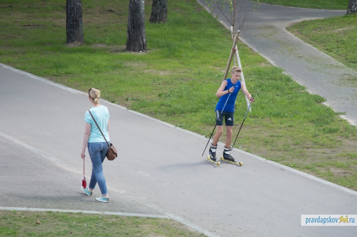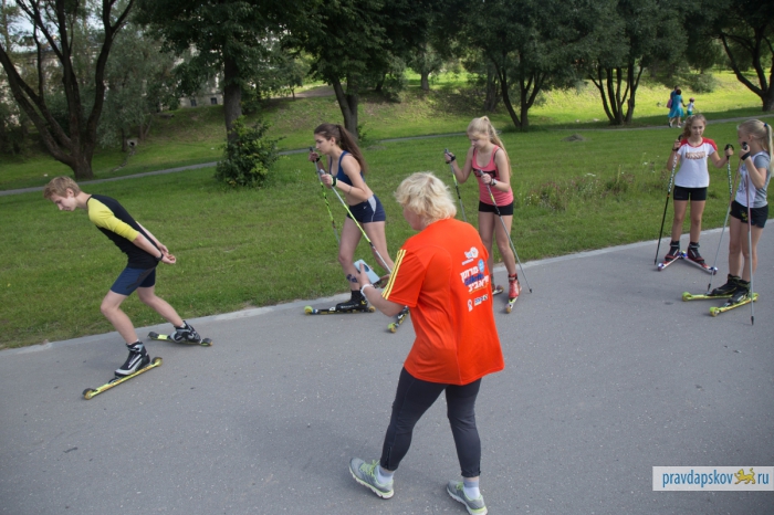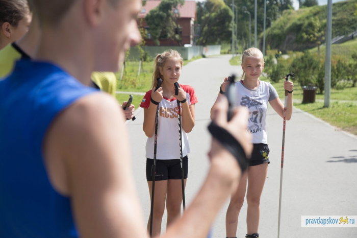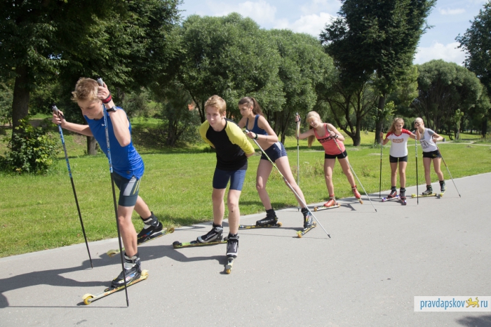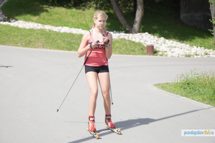 Утро четверга оказалось на удивление солнечным и жарким. На гребной базе, где мы договорились встретиться с заведующей отделением биатлонных и лыжных гонок детско-юношеской спортивной школы «Ника» Еленой Вайгиной, уже вовсю шли тренировки. Псковские гребцы шустро сновали по реке на разноцветных байдарках. Биатлонисты в «Нике» занимают три небольших помещения, в которых хранится инвентарь.