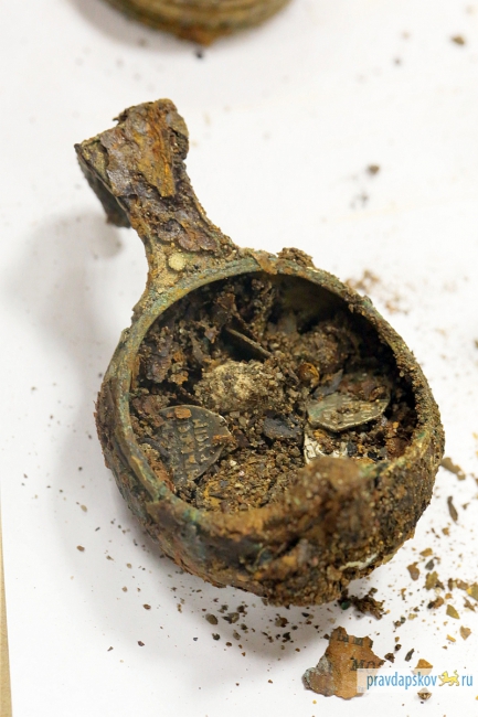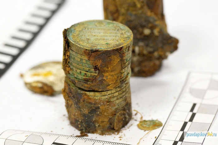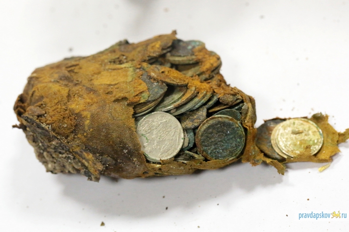 Археологи думали, что наткнулись на крестьянский клад медных монет, а оказалось, что нашли настоящую нумизматическую коллекцию. Таких кладов в городе еще не было, стоимость одной монеты может доходить до 2 млн рублей. Специалисты хотели скрыть находку от общественности до ее детального изучения, но информация просочилась в прессу.