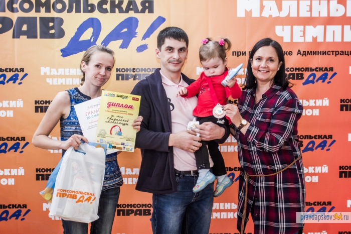 В городе в 11-й раз прошел семейный праздник «Маленький чемпион». Абсолютной чемпионкой стала малышка Юля из Санкт-Петербурга, которая вместе с папой и мамой специально приехала на праздник в Псков.