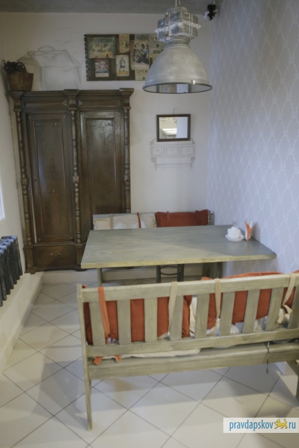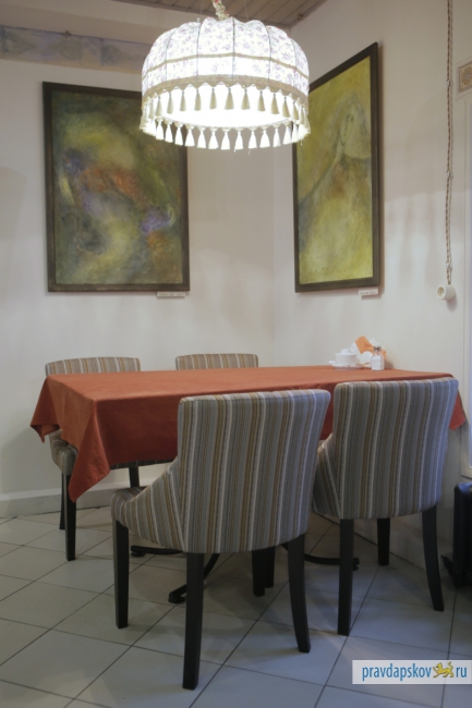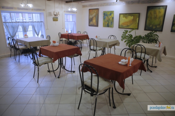 В доме Бабининых сохранилась одна историческая стена, которую обыграли в интерьере кафе, открытого в памятнике архитектуры. В кафе можно прийти не только поесть, но и на выставку. Владелец здания отверг все претензии по поводу «неправильной» реставрации и эксклюзивно «Псковской правде» рассказал, как создавался проект.