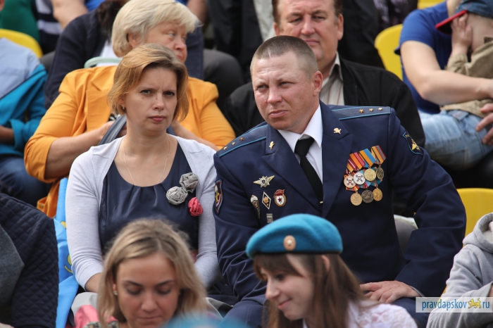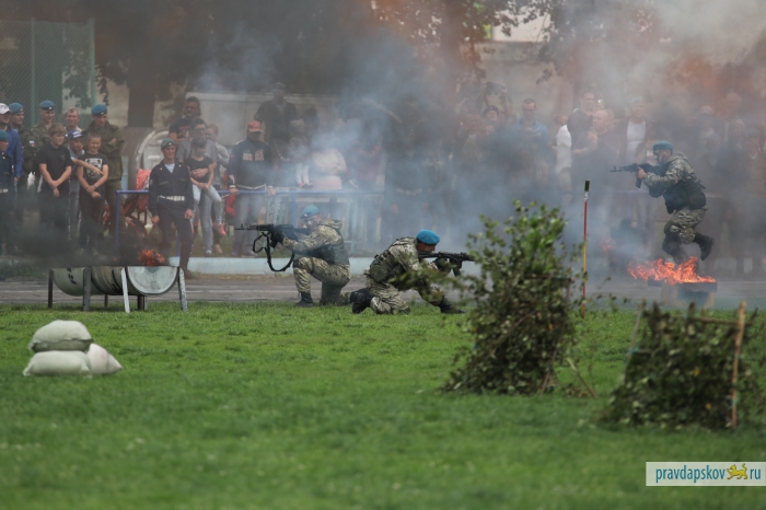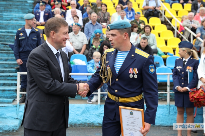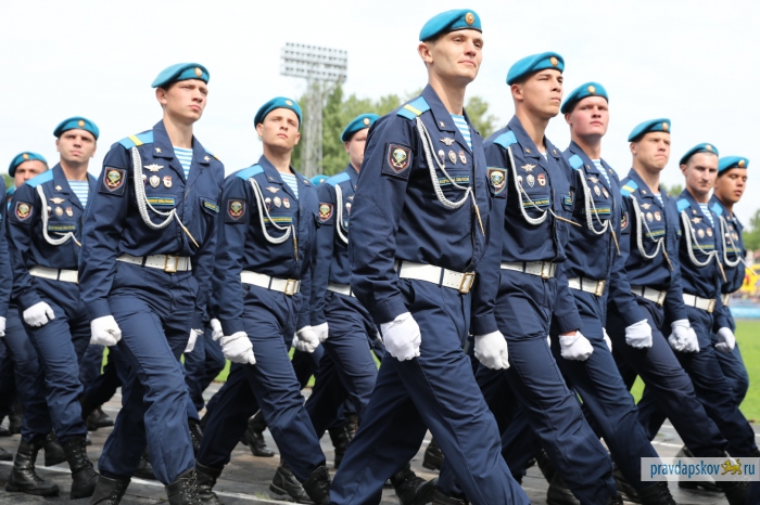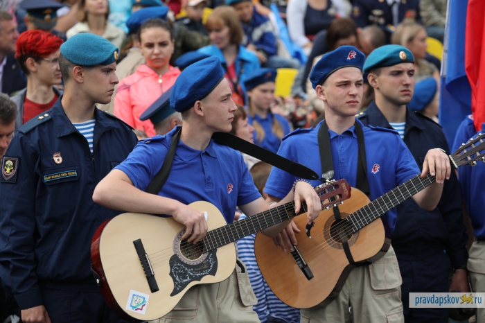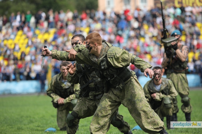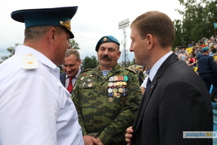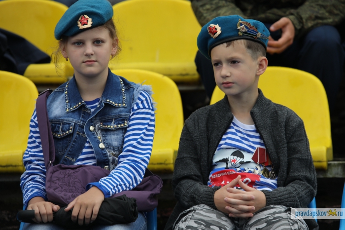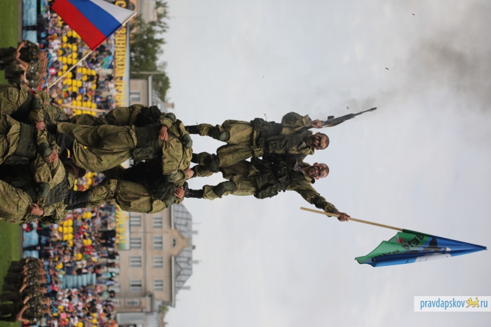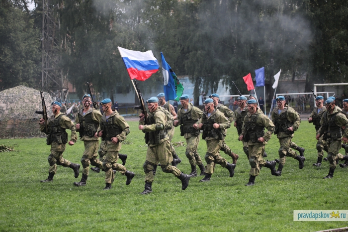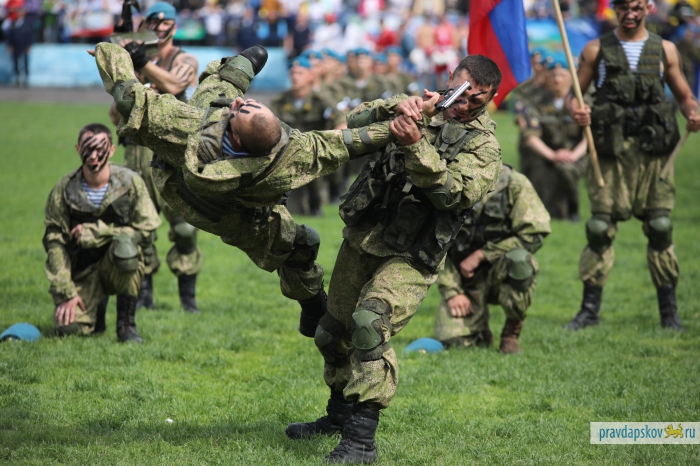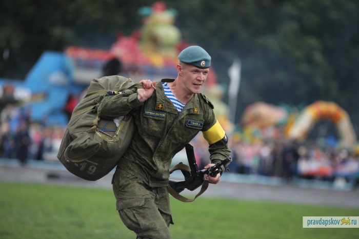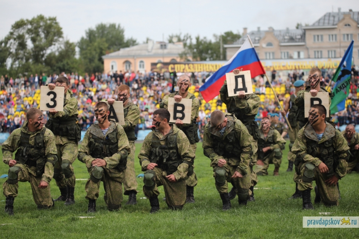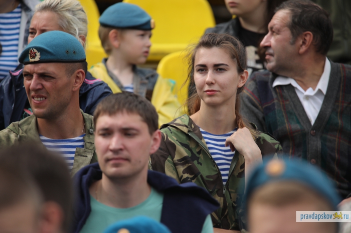 Традиционный праздник, посвященный 87-ой годовщине образования Воздушно-десантных войск отмечают на стадионе «Машиностроитель». Сотни десантников собрались в центре Пскова, чтобы себя показать и на других посмотреть.