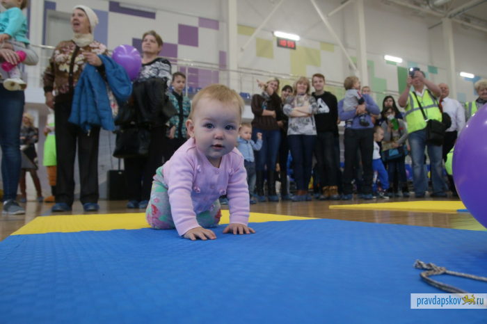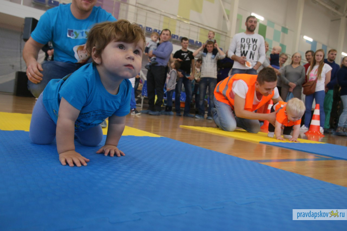 В Пскове в тринадцатый раз прошёл самый милый спортивный праздник для всей семьи «Маленький чемпион». На старт вышли 84 малыша от полугода до двух лет. Деткам предстояло проползти по десятиметровой дорожке.