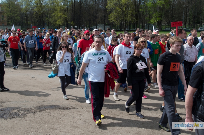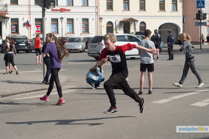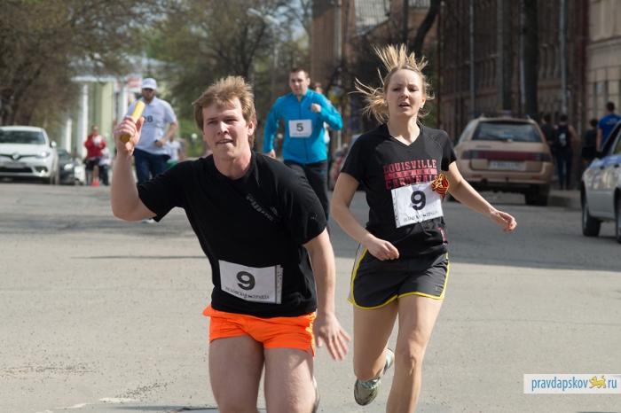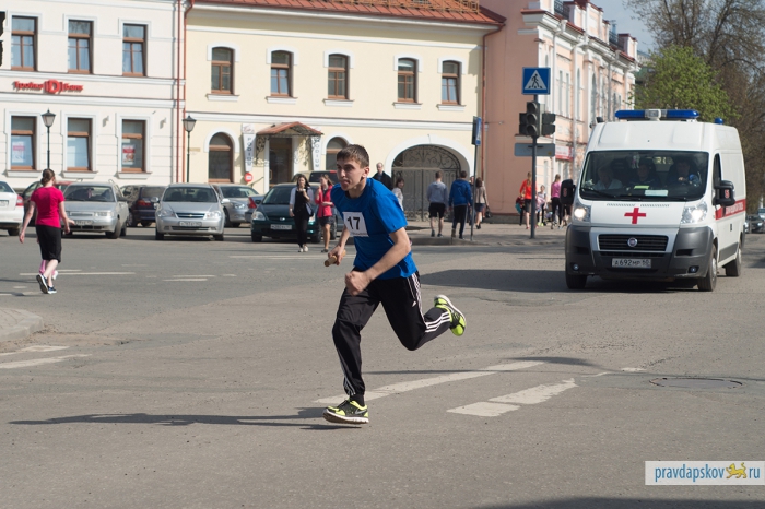 Псковичи пробежались по улице Советской в честь Дня Победы