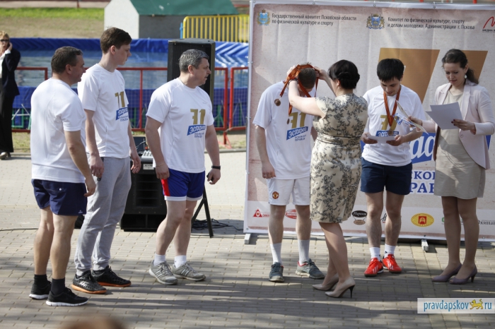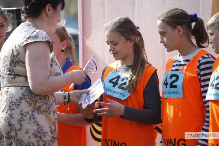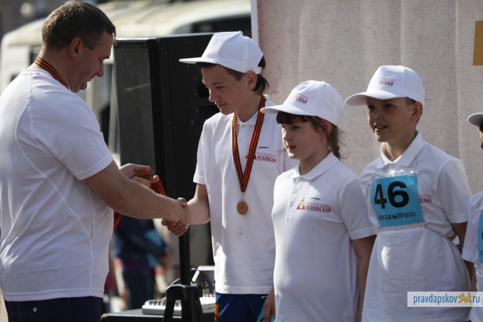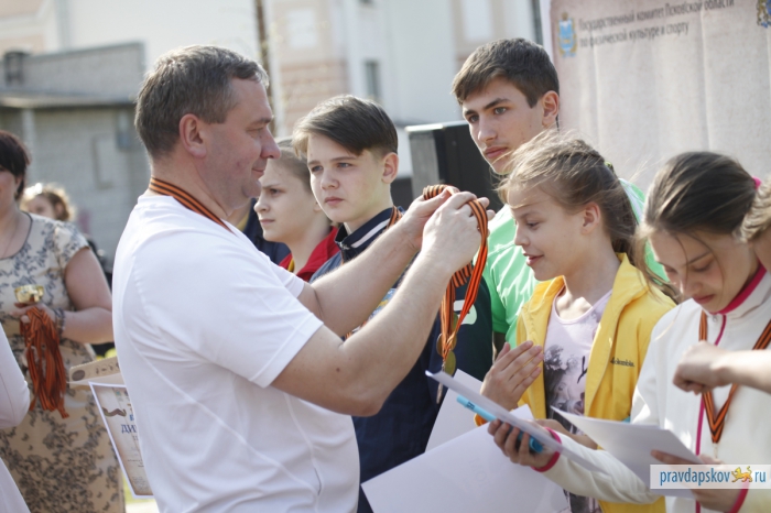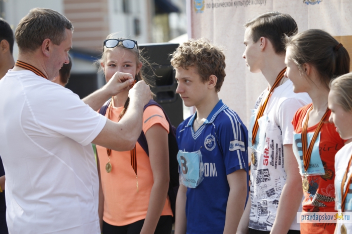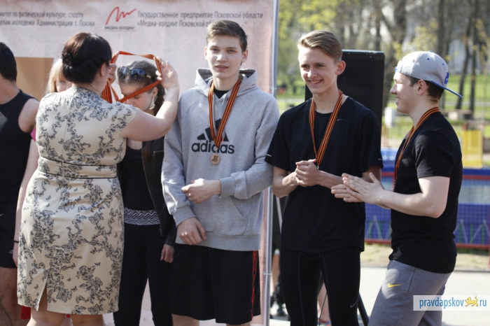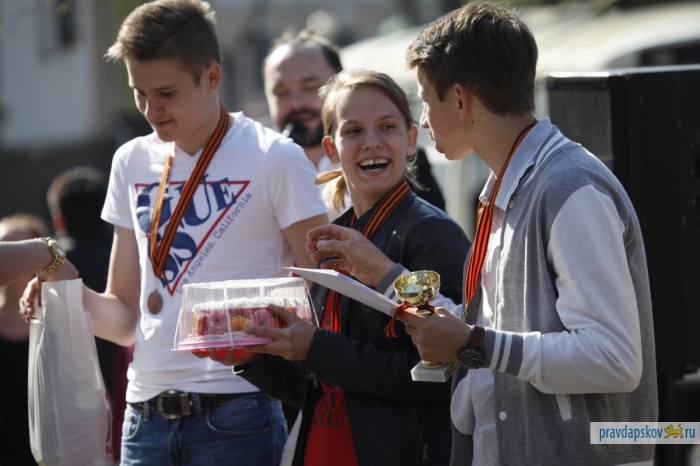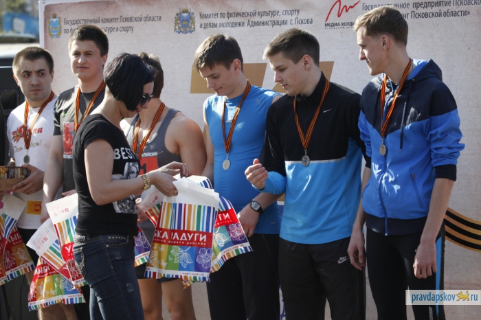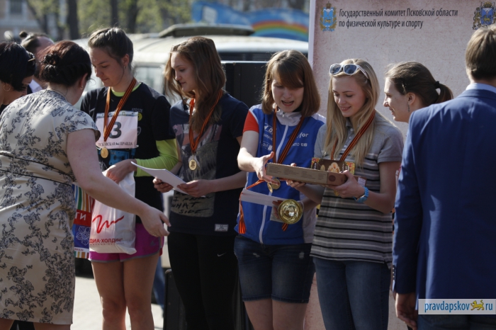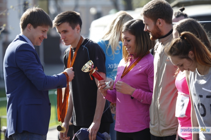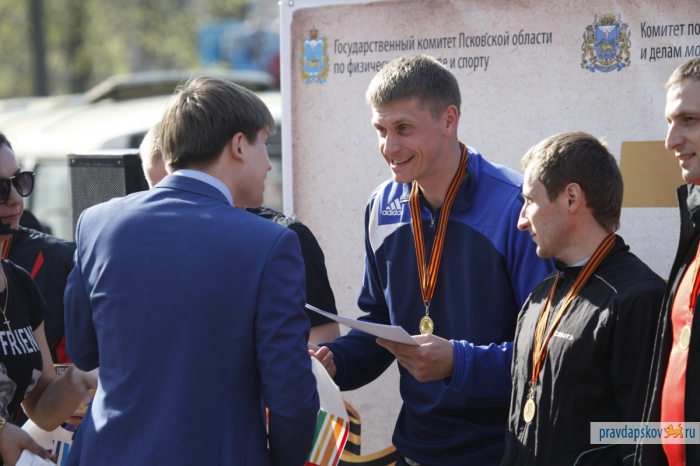Награждение победителей эстафеты, прошедшей в Пскове 4 мая