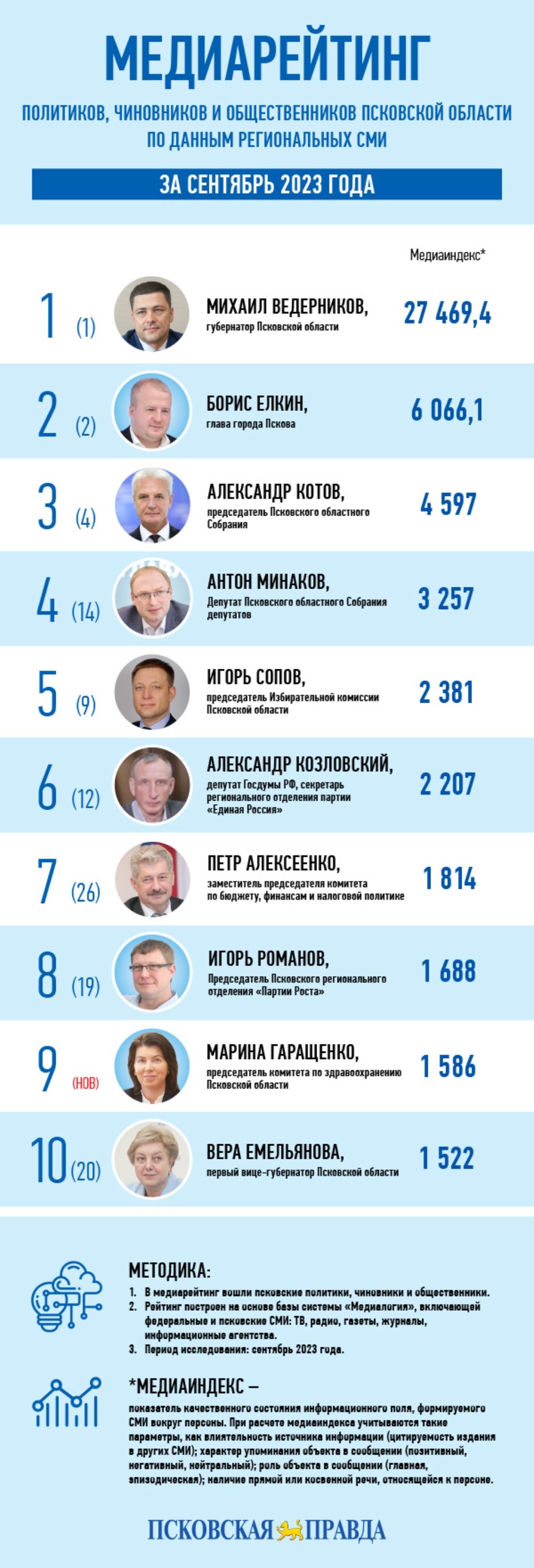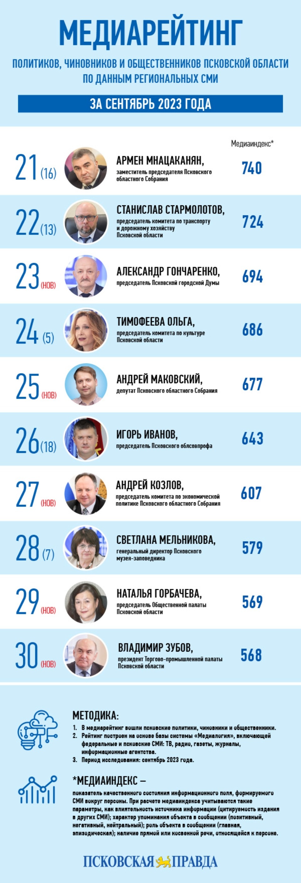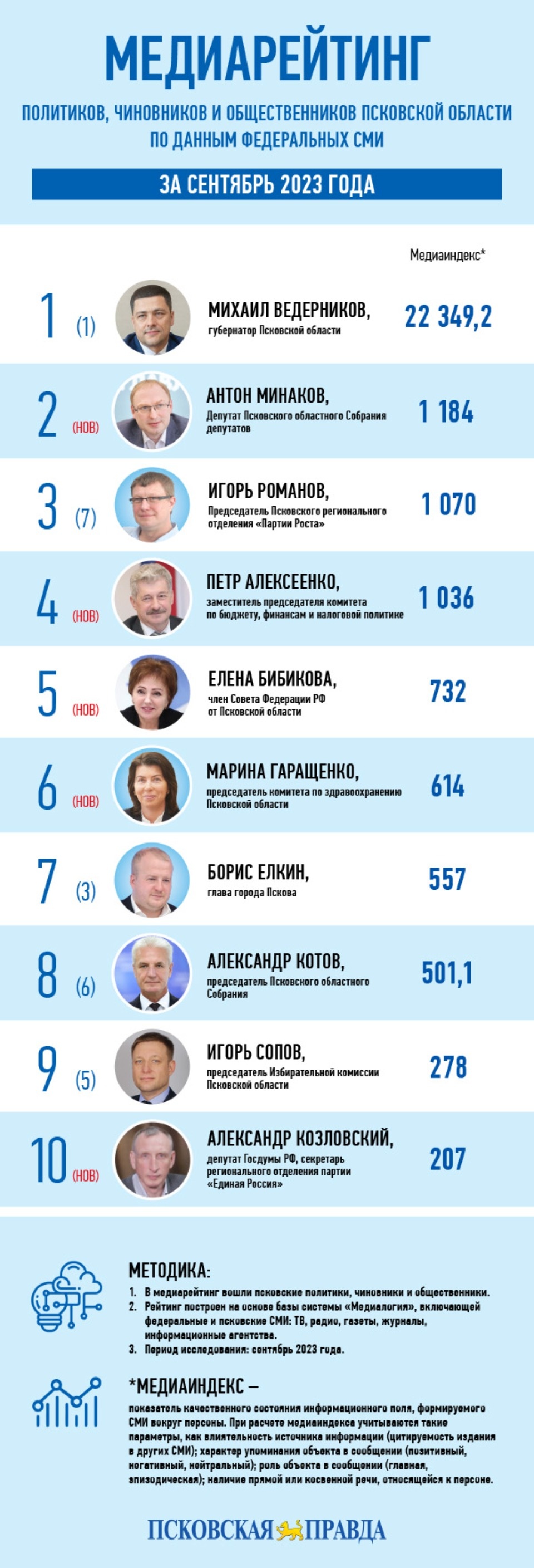 ![Медиарейтинг «Псковской правды»: сентябрь 2023 года Медиарейтинг «Псковской правды»: сентябрь 2023 года]()
