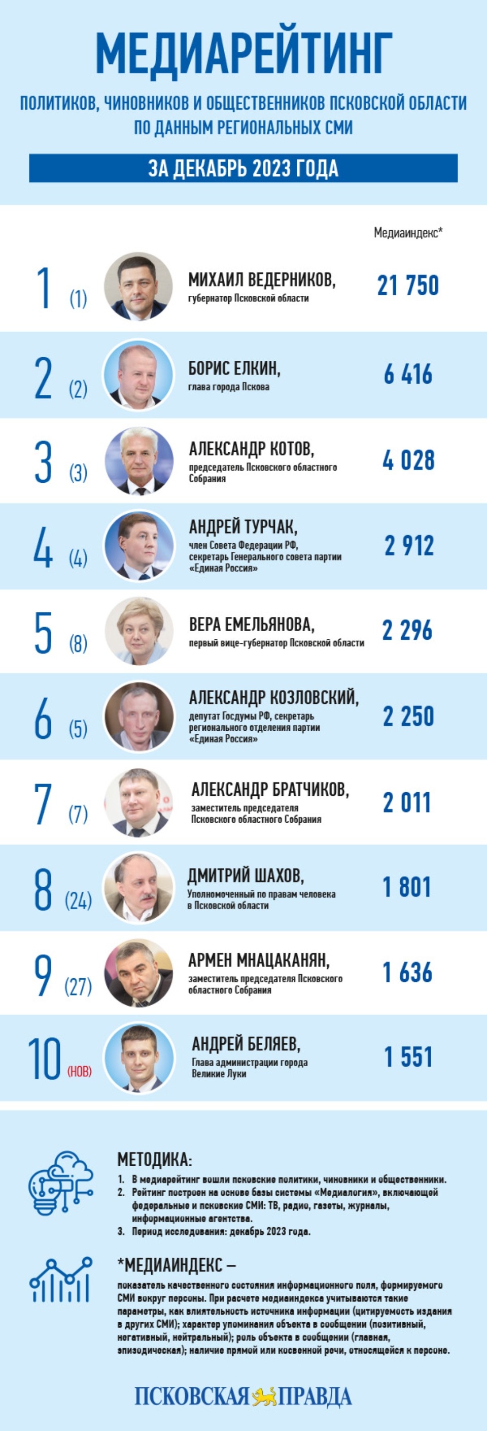 ![Медиарейтинг «Псковской правды»: декабрь 2023 года Медиарейтинг «Псковской правды»: декабрь 2023 года]()