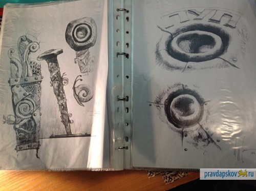 Псковский кузнец Евгений Вагин кладет на стол внушительную папку. Все это –эскизы не получивших воплощения проектов, от звонницы в честь 1150-летия России до Пупа земли кузнечной.