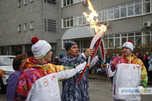 25 октября Псков впервые принял эстафету олимпийского огня! Сотни псковичей вышли на улицы города, чтобы увидеть исторический момент. Тысячи собрались на Октябрьской площади, чтобы поучаствовать в зажжении чаши олимпийского огня. А сам огонь по улицам города пронесли 67 факелоносцев, среди которых были призеры Олимпийских игр, выдающиеся спортсмены, деятели культуры региона и многие другие.