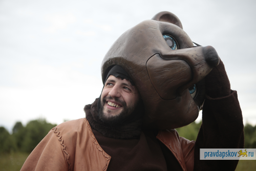 К приезду «Псковской правды» на поле как раз снимали одну из сцен превращения игрушки в полноразмерного зверя. Медведь идет по полю в еловое мелколесье, главный герой мальчик Иво пытается пойти за своей игрушкой – по сюжету оказывается, что это – сон, все вокруг окутывает туман. За туман в изборском поле отвечает огромная труба, кинутая по краю съемочной площадки. Медведь не спеша уходит в чащу, Иво следует за ним. Александра Стреляная командует обоим по громкой связи: «Пошел! Оглянулся! Шапку! Сними шапку!» Одна и та же картина повторяется по несколько раз в разных ракурсах.