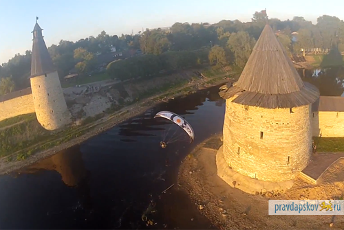 Виражи вокруг Троицкого собора и памятника Александру Невскому, пролеты под мостами и вдоль русла Великой и Псковы – лишь малая часть сюжета этого завораживающего видеоролика.