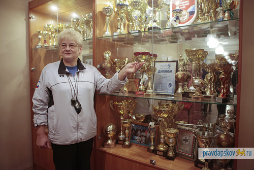 Участие в соревнованиях – дело непростое. Поэтому мы попросили поделиться опытом конкурсантов прошлого года – футбольную команду девочек Псковского педагогического комплекса. Они также боролись за победу в номинации «Рекорд» и были удостоены диплома участников. Он, кстати, хранится в витрине вместе с кубками за футбольные победы.