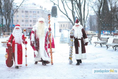 Сотрудники ГИБДД выходили из своих машин, машины на дорогах сигналили, продавцы выбегали из магазинов, коммунальщики бросали ремонтные работы, когда в городе началась эстафета Дедов Морозов от «Псковской правды».Вместе с Дедушками горожане пели песни, рассказывали стишки, получали подарки и желали друг другу мира и добра.
