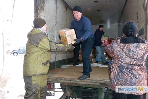 Псковичи не остаются безучастными к беде в Новороссии. Сотни горожан и сельчан в декабре прошлого и в январе этого года для братского народа собрали 4 тонны продовольствия, несколько тонн теплых вещей, медикаментов и средств гигиены. Сбор, сопровождение и передачу гуманитарной помощи организовали активисты местного общественного объединения. Благодаря пожертвованиям наших земляков, 10-тонный грузовик, наполненный доверху, преодолел 1700 км и благополучно доставил к месту назначения такой необходимый груз. 19 января активисты Сергей Костец и Владимир Николаев неподалеку от пограничного переходного пункта «Изварино» передали гуманитарный груз помощи ополченцам Луганской народной республики из бригады «Призрак». Сергей и Владимир отметили, что доставка произошла исключительно вовремя, так как уже на следующий день боестолкновения на линии разграничения с карателями возобновились с новой силой.