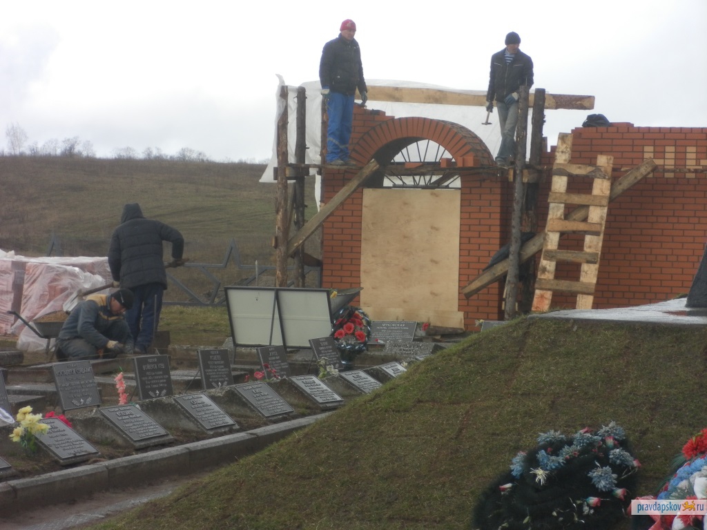 Всем им посвятят новый памятник: стену - 25 метров в длину и 4 метра в высоту - из красного кирпича. Она копирует укрепления Московского Кремля. Такую форму памятника выбрали, так как соединения, погибавшие под Новосокольниками, до этого отстояли Москву и вышли из Ржевского котла. Кирпич для стены привезли из Подмосковья.