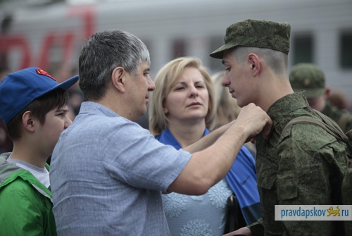 18 июня с перрона псковского вокзала призывники из Пскова отправились к местам прохождения срочной службы. По традиции проводить новобранцев пришли родители, друзья, а многих и любимые девушки! Фоторепортаж с отправок смотрите ЗДЕСЬ.Весенний призыв начался 1 апреля и завершится 15 июля. В этом году военную форму наденут порядка 300 псковичей, из них около 30% имеют высшее образование. Псковичи направляются для прохождения срочной службы во все рода войск и на флот, в родной Западный военный округ, включающий 29 субъектов Российской Федерации.