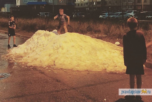 Необычное зрелище возле Ледового дворца в Пскове заставило многих псковичей удивиться: прямо на асфальтовой дорожке возле здания появилась настоящая гора снега!- Гуляли вечером в районе Ледового. Видим: справа от здания сугроб, дети в снежки играют. И это в 30-градусную жару! - говорит жительница Завеличья Наталья. - Мальчишки на великах ездили по этой куче. Даже мы, взрослые люди, сделали по снежку. Я тоже даже послала фото сестре в Питер. Она поверила, что у нас снег выпал! Теперь я понимаю людей в Африке, которые радуются снегу, когда он у них выпадает раз в 20 лет. Это было настолько приятно в такую жару - потрогать снег!