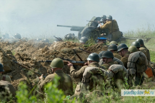 – У меня ни перекиси, ни зеленки, ни бинтов! – искренне переживала за «раненных» у нее на глазах красноармейцев шестилетняя псковичка Даша. – Ну чем же я им помогу?Неподалеку от ребенка шел «бой». Бойцы Красной армии сражались с превосходящими частями вермахта, по полю лавировали бронеавтомобиль, танкетка и знаменитая «полуторка», а воздух сотрясали выстрелы из 45-миллиметровой пушки и противотанкового орудия…