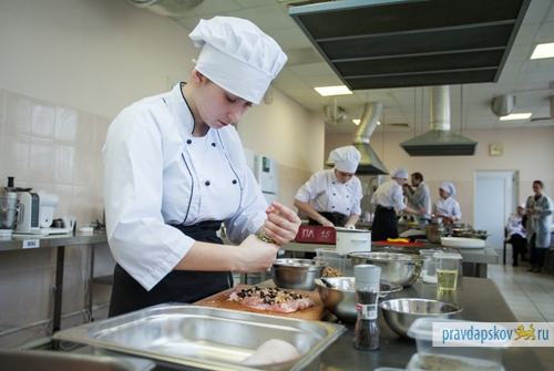 Первый региональный чемпионат «Молодые профессионалы» Worldskils Russia протестировал юных поваров Псковского региона. За звание лучшего боролись шесть студентов со всех районов области. В помещении, где проходили испытания, атмосфера была настолько накаленной, что закипала не только вода в кастрюле с картошкой. За 4 часа каждый конкурсант должен был приготовить три блюда. Псковский колледж профессиональных технологий и сервиса, на базе которого проходил чемпионат, словно вымер. Внутри такая тишина, что сразу хочется перейти на шепот. Оставив одежду в гардеробе и получив бахилы и халаты, мы в полном безмолвии проследовали к месту назначения. В холле на втором этаже видеотрансляцию из святая святых – кухонного зала – смотрели студенты. Звук в трансляции отсутствовал, в зале – тоже. Все, как зачарованные, смотрели только на экран.