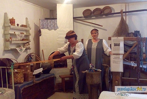 Старинные утюги, прялки, ткацкий станок, полотенца и посуда – все эти предметы в комнате, больше напоминающей музей, создают необходимый колорит.