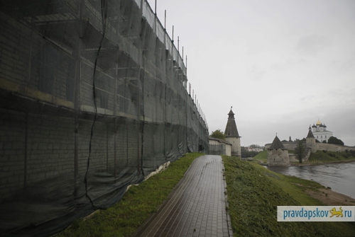 То есть все без исключения псковичи и гости города увидят «фишку» нынешней реставрации – конструкцию из темного стекла, которая заменит часть стены Варлаамовской башни.