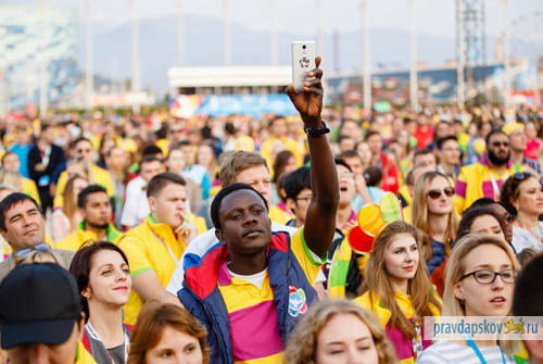 Псковские участники Всемирного фестиваля молодежи и студентов, проходившего в Сочи, в буквальном смысле прикоснулись к истории и стали ее частью. Где еще могут собраться сразу 25 тысяч человек из 150 стран, молодых, ярких, интересных, движимых жаждой сделать мир лучше. Ни внешность, ни национальность, ни культурные различия не стали барьером к общению. Псковская область направила на фестиваль 28 делегатов и 15 волонтеров.