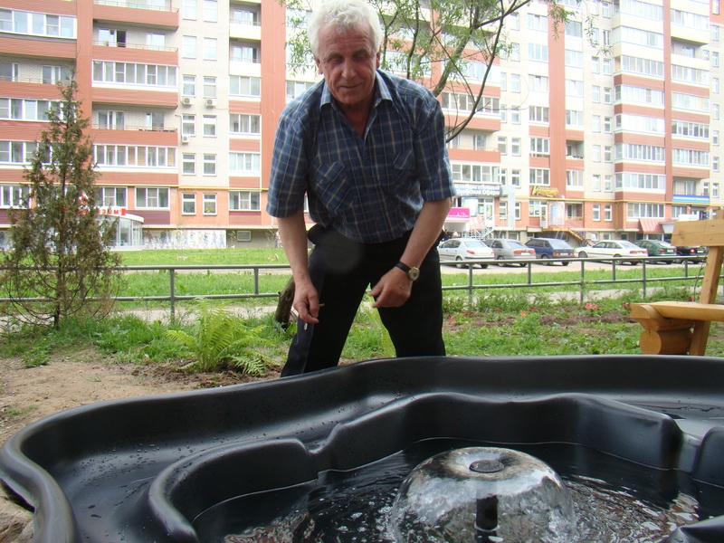 А недавно около дома и вовсе фонтан забил, клумбы цветами благоухают, водоем рыбки обжили, а рядом со скамейками лебедь-красавец из старой автомобильной покрышки приземлился.
