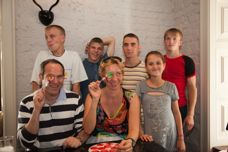 После каруселей расторможенных и довольных ребят ждал шикарный обед в центре города в кафе «Бублик». Кроме салатов из загадочной моцареллы и вкусных чизкейков, ребят ждал еще один сюрприз – в ресторан приехал сам Михаил Шац. Слава, который сидел напротив Михаила, долго смотрел на соседа и, не выдержав, заметил: «Где-то я вас уже видел…» Михаил не стал отрицать. Восторженные ребята бегали между залом и мансардой, Женя напросился посидеть в машине Михаила, а Сергей набил карманы конфетами под завязку. Это, кстати, оказалось лишним: сотрудники кафе собрали несколько пакетов пирожных, тортов и печенья в подарок ребятам.