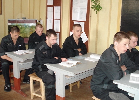 Из 37 человек, кто продолжает или заканчивает базовое образование, только 8 – несовершеннолетние. Но все имеют право учиться в школе. Как правило, говорят сотрудники изолятора, от учебы не отказываются даже те, кто годами уже едва ли «тянет» на школяра. Самым младшим в классах – 15 лет, старшим – к 30. Их уроки мало отличаются от уроков в вечерней школе – небольшой класс, практически индивидуальное обучение, домашнее задание. Только перед уроком, дабы обеспечить безопасность учителя, учеников обыскивают. И на уроке присутствует сотрудник отдела режима. К концу учебного года – и это тоже особенность школы в изоляторе – состав класса может поменяться на 90%.
