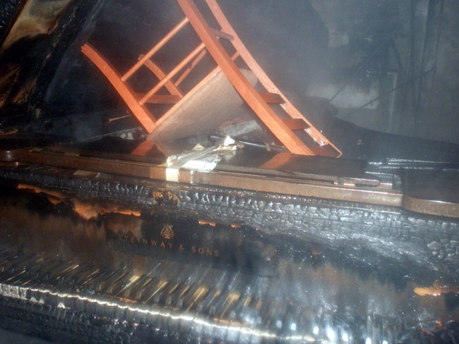 24 декабря обуглилось только два рояля – ровно столько, сколько было на сцене. Зато один из них - «Steinway& Sons» стоимостью 5 миллионов 200 тысяч рублей. (50% - деньги спонсоров, 50% - деньги, вырученные за псковские концерты «Crescendo-2009» и оперу «Псковитянка» в Псковском кремле).