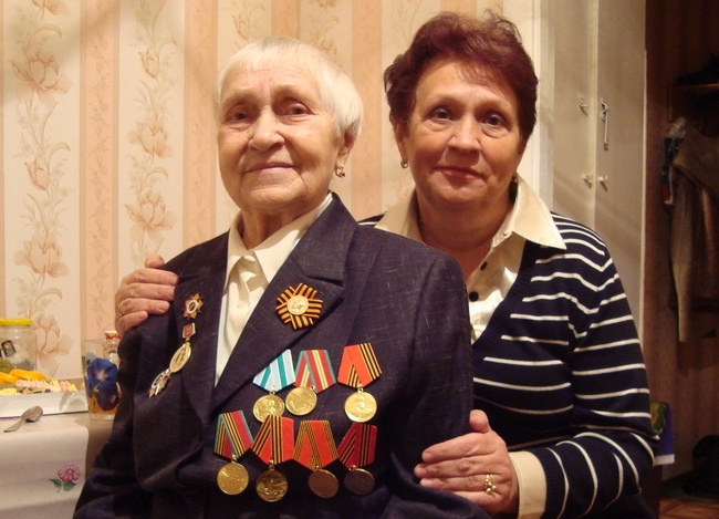 А костюм Нине Демидовне, как и всем фронтовикам, пошили на губернаторские деньги. На фото – с дочкой Надеждой.